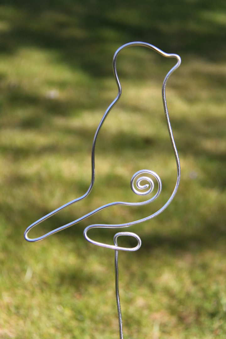 Dekoobjekte aus Aluminiumdraht für Haus und Garten Alles Drahttiere Kräuter Kugeln Glasstecker Hufeisen Die Drahttiere und -stecker sind aus Aluminiumdraht unterschiedlicher Stärken gearbeitet und können alle bei Wind und Wetter draußen stehen.